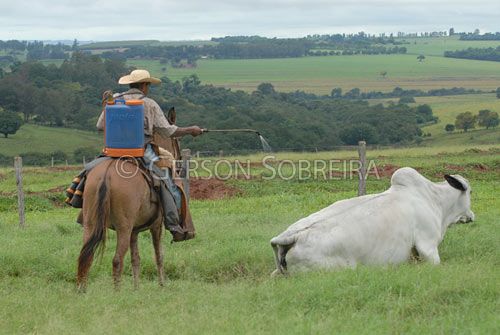 Keywords: Costal, Pulverizador, Equipamento, Mosca, Repelente, Veneno, Pulverizaçao, Objeto, Animal, Horizontal, Parana, Santa Fe, 2008, Equino, Cavalo, Gente, Homem, Adulto, Trabalho, Vaqueiro Peao Cowboy, Manejo |
