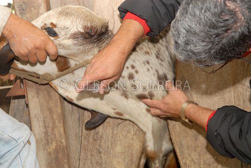 Keywords: Preso, Imobilizado, Seringa, Exame, Manejo, Novilha, Zebu, Sao Paulo, 2008, Caçapava, Animal, Gado Pecuaria, Bovino, Gir, Leiteiro, Gente, Homem, Adulto, Instalaçao rural, Tronco, Brete, Agulha, Horizontal, Colheita, Coleta, Sangue, Amostra |