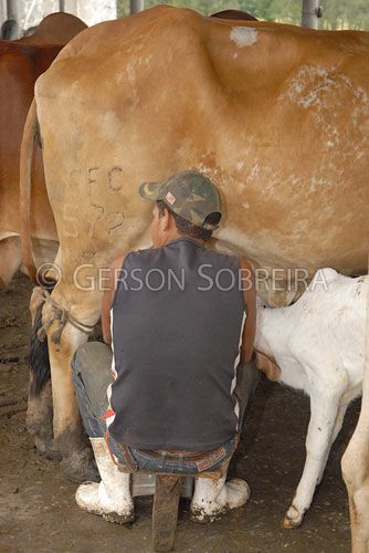 Keywords: Stool, Seat, Milk, Cow, Shed, Rural installation, Zebu, Vertical, Sao Paulo, 2008, Caçapava, Animal, Cattle Livestock, Bovine, Gir, Milkman, Handling, Detail, Rear, Posterior, To milk, Manual, People, Man, Young man, Young, Job, Dairy worker, Milker |