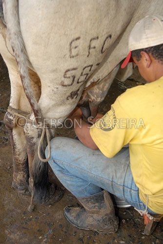 Keywords: Seat, Stool, Bucket, Milker, Dairy worker, Job, Man, Young man, Young, People, Manual, To milk, Handling, Milkman, Gir, Cattle Livestock, Bovine, Animal, Caçapava, 2008, Sao Paulo, Vertical, Zebu, Rural installation, Cow, Milk |