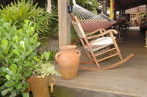 Keywords: Balance chair, Pottery, Vase, Horizontal, 2008, Parana, Ilha do Mel, Architecture, Object, Terrace, Chair, Wood, Net, Inn |