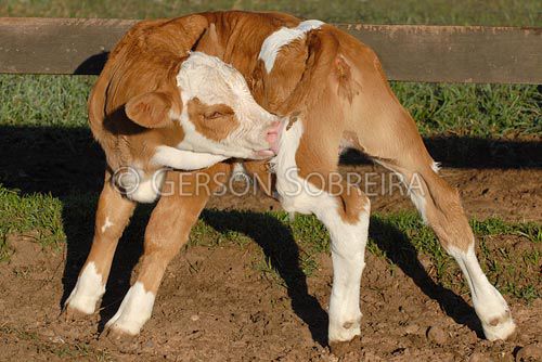 Keywords: Lambendo, Lambida, Itapetininga, Sao Paulo, 2008, Animal, Gado Pecuaria, Bovino, Simental, Bezerra, Horizontal, Coçando, Coceira, Rabo |
