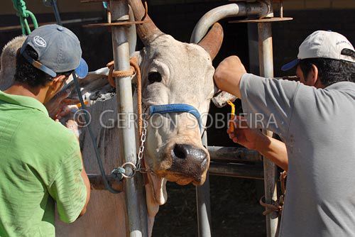Keywords: Blade, Trimming, Shear, Shearing, Handling, Cow, Standard, Nelore, Cattle Livestock, Bovine, Animal, Marilandia do Sul, Horizontal, Parana, 2008, Rural installation, Stem, Squeeze chute, People, Man, Adult, Job, Cowpoke Buckaroo Cowboy |