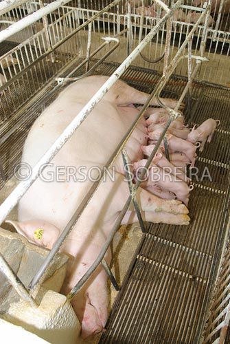 Keywords: Nide, Dalland, Sow, Swine, Pig, Animal, Arapoti, Parana, 2009, Piglet, Teat nipple, Handling, Feeding, Breastfeeding, Sucking, Vertical  |