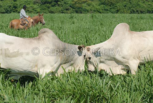 Keywords: Cowpoke Buckaroo Cowboy, Job, Man, Adult, People, Pasturage, Panicum maximum, Guineagrass, Grass, Pasturing, Pasture, Feeding, Handling, Bull group, Bull, Male, Standard, Nelore, Animal, Cattle Livestock, Bovine, Parana, Horizontal, 2009, Santa Fe, Fighting, Fight  |