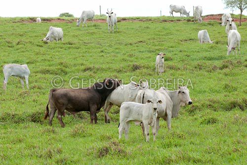 Keywords: Breed, Breeding, Pasture, Braunvieh, Bos taurus, Zebu, Bull, Male, Crossbreeding, Amapora, Standard, Nelore, Cattle Livestock, Bovine, Animal, 2009, Horizontal, Parana |