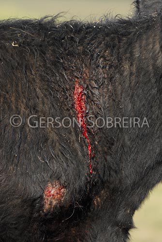 Keywords: Londrina, Vertical, Gado Pecuaria, Bovino, Animal, 2009, Bezerro, Macho, Aberdeen Angus, Red, Manejo, Doença, Carrapato, Boophilus microplus , Machucado, Sangramento, Sangue, Ferida |