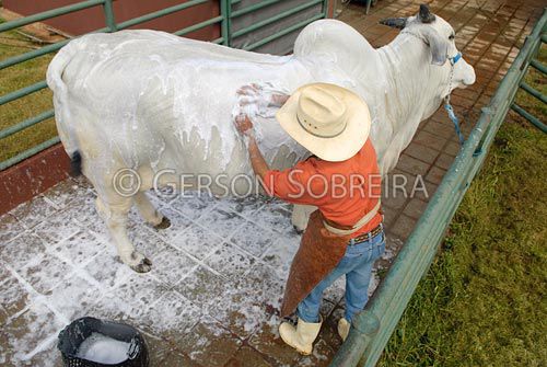 Keywords: Sabao, Espuma, Agua, Banhando, Banho, Preparo, Manejo, Tratador, Trabalho, Homem, Adulto, Gente, Gado Pecuaria, Bovino, Animal, 2009, Santa Fe, Parana, Vaca, Nelore, Padrao, Horizontal |