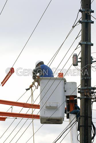 Keywords: Eletricidade, Eletrico, Fio, Poste, Vertical, Parana, 2009, Londrina, Conserto, Consertando, Gente, Homem, Adulto, Trabalho, Eletricista, Serviço Publico |