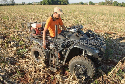 Keywords: Broca, Coletando, Coleta, Homem, Rapaz, Jovem, Gente, Primeiro de Maio, Horizontal, Parana, 2009, Agricultura Agricola, Manejo, Equipamento, Quadriciclo, Georreferenciamento, Compactaçao, GPS, Coletor, Amostra, Solo |