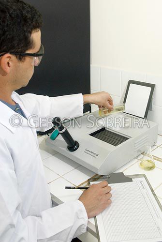 Keywords: Analise, Soja, Destilado, Acido graxo, Laboratorio, Londrina, Usina, 2009, Parana, Quimica, Oleo, Industria, Fabrica, Equipamento, Gente, Homem, Adulto, Trabalho, Quimico, Vertical, Colorimetro, Mediçao, Cor |