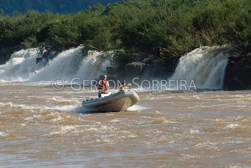 Keywords: Correnteza, Grupo, Gente, Motor, Inflavel, Lancha, Barco, Fluvial, Transporte, Mocona, Salto do Yucuma, Parque Estadual do Turvo, Cachoeira, Corredeira, Agua, Paisagem, Ciliar, Mata Floresta, Reserva, Meio ambiente, Rocha, Pedra, Horizontal, 2010, Rio Grande do Sul, Derrubadas, Rio Uruguai, Canal, Missiones |