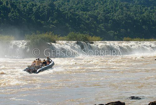 Keywords: Correnteza, Grupo, Gente, Motor, Inflavel, Lancha, Barco, Fluvial, Transporte, Mocona, Salto do Yucuma, Parque Estadual do Turvo, Cachoeira, Corredeira, Agua, Paisagem, Ciliar, Mata Floresta, Reserva, Meio ambiente, Rocha, Pedra, Horizontal, 2010, Rio Grande do Sul, Derrubadas, Rio Uruguai, Canal, Missiones |