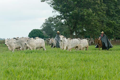 Keywords: Brachiaria decumbes, Braquiaria, Capim, Pastoreio, Pasto Pastagem, Manejo, Touro, Macho, Gado Pecuaria, Bovino, Animal, Santa Fe, 2010, Parana, Horizontal, Nelore, Padrao, Gente, Trabalho, Vaqueiro Peao Cowboy, Homem, Adulto, Conduçao, Conduzindo, Tocando, Movimento, Andando, Tourama, Muar, Mula, Objeto, Apetrecho, Capa de chuva |