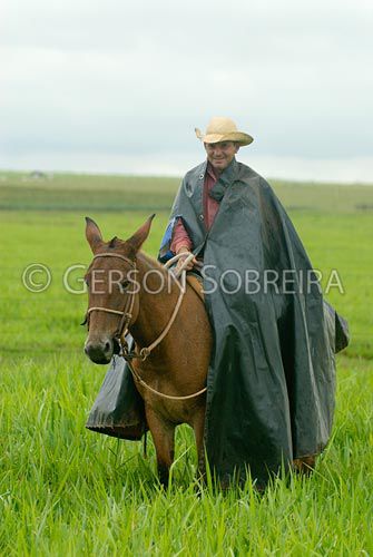 Keywords: Homem, Adulto, Vaqueiro Peao Cowboy, Trabalho, Gente, Parana, 2010, Santa Fe, Animal, Gado Pecuaria, Bovino, Manejo, Vertical, Muar, Mula, Objeto, Apetrecho, Capa de chuva  |