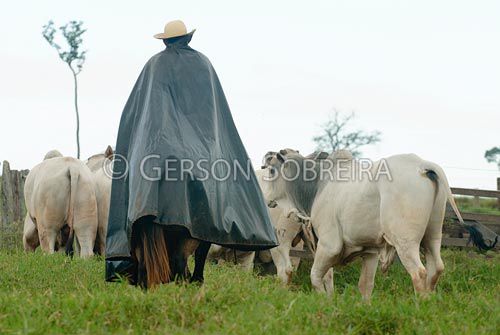 Keywords: Brachiaria decumbes, Braquiaria, Capim, Pastoreio, Pasto Pastagem, Manejo, Touro, Macho, Gado Pecuaria, Bovino, Animal, Santa Fe, 2010, Parana, Horizontal, Nelore, Padrao, Gente, Trabalho, Vaqueiro Peao Cowboy, Homem, Adulto, Conduçao, Conduzindo, Tocando, Movimento, Andando, Tourama, Muar, Mula, Objeto, Apetrecho, Capa de chuva  |