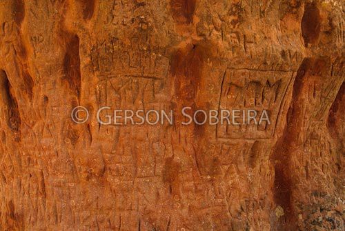Keywords: Devastation, Vandalism, Degraded, Stone, Texture, Horizontal, Arenitic, Rock, 2010, Parana, Ponta Grossa, Environment, Reserve, Biome, Campos Gerais, Landscape, Nature, Parque Estadual de Vila Velha, Arenitics, Itacueretaba |