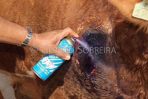 Keywords: Lata, Mao, Anti-septico , Larvicida, Mata bicheira, Luva, Curativo, Tratamento, Ferida, Machucado, Abscesso Abcesso, Inflamaçao, Doença, Manejo, Simental, Touro, Macho, Gado Pecuaria, Bovino, Animal, Itarare, 2010, Parana, Pele, Subcutaneo, Aplicaçao, Spray, Medicamento, Remedio |