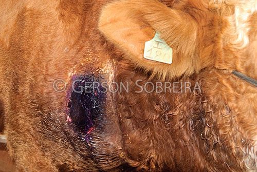Keywords: Anti-septico , Larvicida, Mata bicheira, Curativo, Tratamento, Ferida, Machucado, Abscesso Abcesso, Inflamaçao, Doença, Manejo, Simental, Touro, Macho, Gado Pecuaria, Bovino, Animal, Itarare, 2010, Parana, Pele, Subcutaneo |