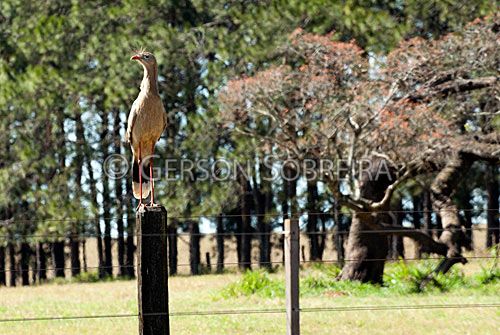 Keywords: 2010, Cerqueira Cesar, Sao Paulo, Animal, Horizontal, Fauna, Ave, Passaro, Nativo, Seriema, Cariama cristata, Cerca, Fio, Arame |