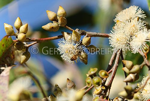 Keywords: Horizontal, 2010, Sao Paulo, Itarare, Flora, Natureza, Arvore, Flor, Florida, Exotico, Eucalipto, Eucalyptus spp, Folha, Florada, Detalhe, Macro, Fauna, Animal, Inseto, Abelha, Apis mellifera, Polinizaçao |
