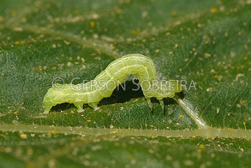 Keywords: Horizontal, Macro, Detalhe, 2010, Rio Grande do Sul, Sao Luiz Gonzaga, Agricultura Agricola, Oleaginosa, Girassol, Helianthus annuus, Fauna, Animal, Inseto, Lagarta, Falsa-medideira, Rachiplusia nu, Praga |