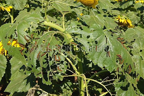 Keywords: Lagarta-do-girassol, Praga, Lagarta, Inseto, Fauna, Animal, Helianthus annuus, Girassol, Oleaginosa, Agricultura Agricola, Sao Luiz Gonzaga, Rio Grande do Sul, 2010, Horizontal, Chlosyne lacinia, Ataque, Atacando, Folha |