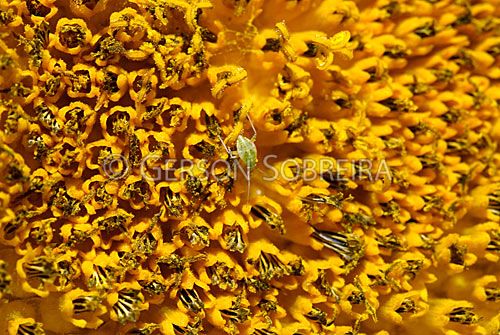 Keywords: Flor, Horizontal, Macro, Detalhe, 2010, Rio Grande do Sul, Sao Luiz Gonzaga, Agricultura Agricola, Oleaginosa, Girassol, Helianthus annuus, Fauna, Animal, Inseto, Praga, Pulgao, Pulgao-das-inflorescencias, Aphis gossypii, Capitulo |
