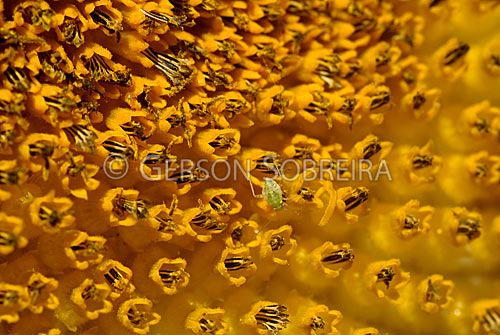 Keywords: Capitulo, Flor, Horizontal, Macro, Detalhe, 2010, Rio Grande do Sul, Sao Luiz Gonzaga, Agricultura Agricola, Oleaginosa, Girassol, Helianthus annuus, Fauna, Animal, Inseto, Praga, Pulgao, Pulgao-das-inflorescencias, Aphis gossypii |