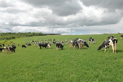 Keywords: Grazing, Cynodon dactylon, Tifton, Pasturing, Pasture, Feeding, Handling, Grass, Holstein Friesian, Holstein, Dutch, Dairy, Milkman, Cow, Cattle Livestock, Bovine, Animal, Minas Gerais, Sao Gotardo, 2010, Horizontal, Cow group, Herd  |