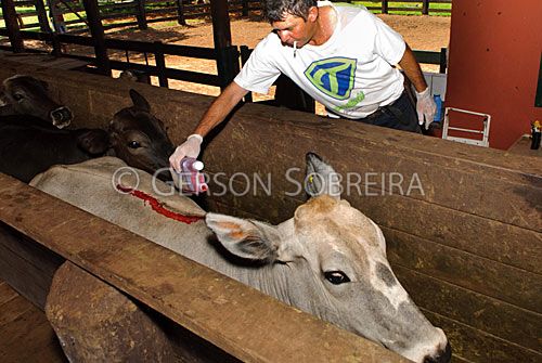 Keywords: Applying, Cow, Doser, Handling, Cattle Livestock, Bovine, Animal, Corral, Santa Fe, Parana, 2011, People, Job, Cowpoke Buckaroo Cowboy, Man, Adult, Horizontal, Horn fly, Haematobia irritans, Pulverize, Repellent |