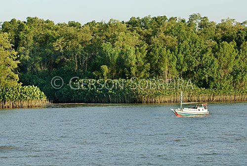 Keywords: Barco, Furo, Embarcaçao, Hidrovia, Transporte, Horizontal, Agua, Para, Belem, 2011, Baia do Guajara, Rio Tocantins, Bacia Amazonica, Flora, Natureza, Aquatica, Macrofita, Aninga, Montrichardia linifera, Aningal, Ilha |