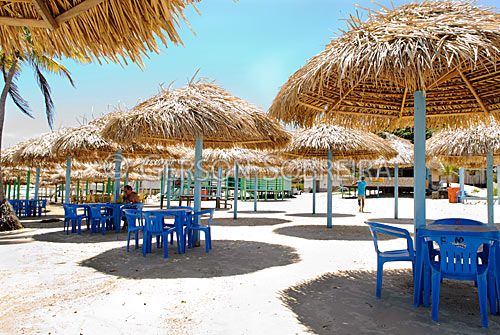 Keywords: Quiosque, Praia do Pesqueiro, Ilha de Marajo, 2011, Para, Horizontal, Soure, Areia, Agua, Mar, Palha, Inaja, Palmeira, Arecaceae, Attalea maripa, Maloca |