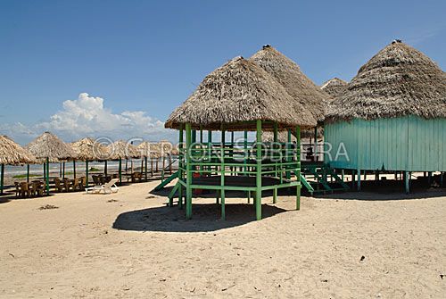 Keywords: Rustico, Restaurante, Bar, Arquitetura, Quiosque, Praia do Pesqueiro, Ilha de Marajo, 2011, Para, Horizontal, Soure, Areia, Agua, Mar, Palha, Inaja, Palmeira, Arecaceae, Attalea maripa, Maloca |