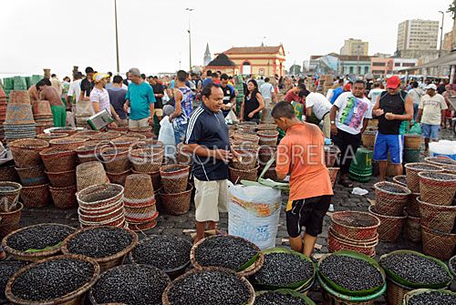 Keywords: Vendedor, Venda, Comercializaçao, Comercio, Horizontal, Para, Belem, 2011, Arecaceae, Euterpe oleracea, Fruto Fruta, Mercado Ver-o-Peso, Cais, Gente, Homem, Adulto, Doca, Paneiro, Feira do Açai, Comprador, Ilha |