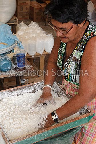 Keywords: Peneira, Crivaçao, Crivar, Mandioca-doce, Aipim, Macaxeira, Manihot utilissima, Tuberculo, Vendedor, Gente, Barraca, Feira, Comercio, Venda, Para, Belem, 2011, Mercado Ver-o-Peso, Alimento, Alimentaçao Nutriçao, Comida, Mandioca, Farinha, Saco, Mulher, Adulta, Vertical |