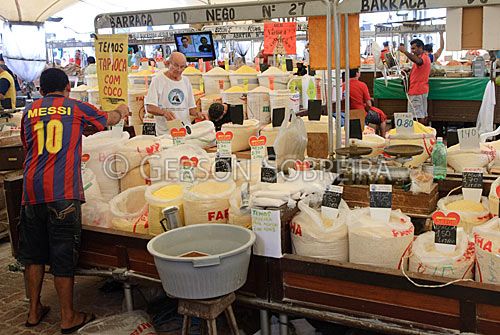 Keywords: Saco, Farinha, Mandioca, Comida, Alimento, Alimentaçao Nutriçao, Mercado Ver-o-Peso, Horizontal, 2011, Belem, Para, Comercio, Venda, Feira, Barraca, Gente, Homem, Adulto, Vendedor, Tuberculo, Manihot utilissima, Mandioca-doce, Aipim, Macaxeira |