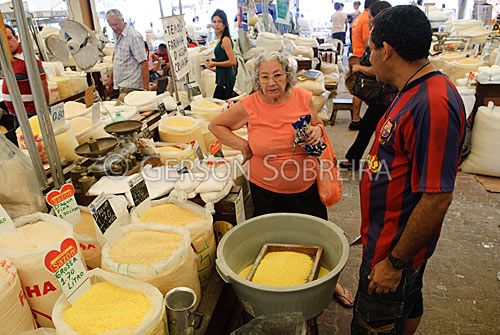 Keywords: Saco, Farinha, Mandioca, Comida, Alimento, Alimentaçao Nutriçao, Mercado Ver-o-Peso, Horizontal, 2011, Belem, Para, Comercio, Venda, Feira, Barraca, Gente, Homem, Adulto, Vendedor, Tuberculo, Manihot utilissima, Mandioca-doce, Aipim, Macaxeira |