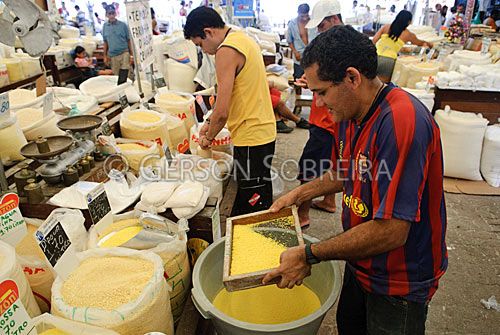 Keywords: Strainer, Flour, Cassava, Food, Aliment, Feeding, Ver-o-Peso market, Horizontal, 2011, Belem, Para, Trade, Shop, Fair, Shelter tent, People, Manihot utilissima, Yuca, Manioc, Man, Adult |