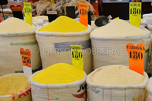 Keywords: Shelter tent, Fair, Trade, Shop, Para, Belem, 2011, Horizontal, Ver-o-Peso market, Aliment, Feeding, Food, Cassava, Flour, Bag, Yuca, Manioc, Manihot utilissima |