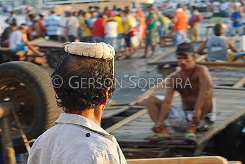Keywords: Proteçao, Cabeça, Horizontal, Carrinho de mao, Carregador, Homem, Adulto, Gente, Feira, Comercio, Venda, Para, Belem, 2011, Mercado Ver-o-Peso |