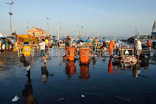 Keywords: Sujeira, Resto, Residuo, Lixo, Pesca, Pescado, Peixe, Rua, Doca, Desembarcadouro, Embarcadouro, Atracadouro, Porto, Barco, Embarcaçao, Horizontal, Feira, Comercio, Venda, Para, Belem, 2011, Mercado Ver-o-Peso, Baia do Guajara, Agua, Carregador, Tabuleiro, Desmantelar, Mesa, Faca, Corte, Estripar, Estripando, Limpeza, Limpando, Cortando |