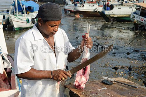 Keywords: Sujeira, Residuo, Pescado, Peixe, Rua, Comercio, Venda, Para, Belem, 2011, Mercado Ver-o-Peso, Agua, Molhado, Desmantelar, Mesa, Corte, Estripar, Estripando, Limpeza, Limpando, Cortando, Horizontal, Urubu, Piraiba, Filhote, Brachyplatystoma filamentosum, Facao |
