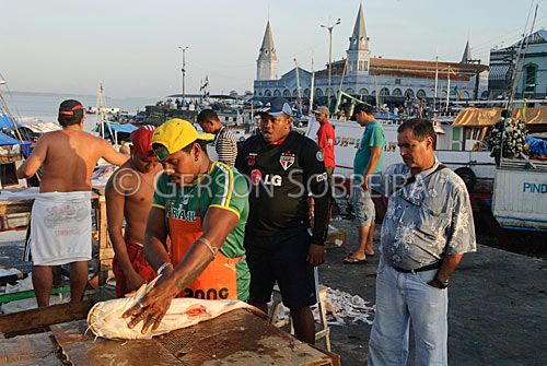 Keywords: Homem, Adulto, Horizontal, Gente, Arius luniscutis, Gurijuba, Faca, Pescado, Peixe, Rua, Comercio, Venda, Para, Belem, 2011, Mercado Ver-o-Peso, Agua, Desmantelar, Mesa, Corte, Estripar, Estripando, Limpeza, Limpando, Cortando |