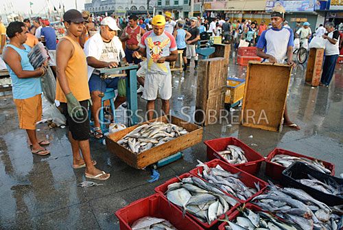 Keywords: Tabuleiro, Equipamento, Balança, Mercado Ver-o-Peso, 2011, Belem, Para, Comercio, Venda, Rua, Peixe, Pescado, Gente, Horizontal, Homem, Adulto, Caixa, Pesando, Peso, Comprando, Negociando, Carregador, Molhado |