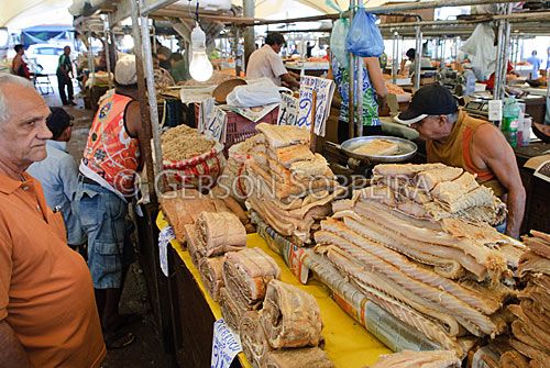 Keywords: Peso, Pesando, Comprador, Vendedor, Balança, Homem, Adulto, Gente, Mercado Ver-o-Peso, Horizontal, 2011, Belem, Para, Comercio, Venda, Peixe, Pirarucu, Arapaima gigas, Salgado, Manta, Alimento, Alimentaçao Nutriçao, Comida, Seco, Barraca |