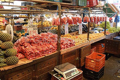Keywords: Fruit, Shelter tent, Fair, Trade, Shop, Para, Belem, 2011, Horizontal, Ver-o-Peso market, Acerola, Malpighia glabra |