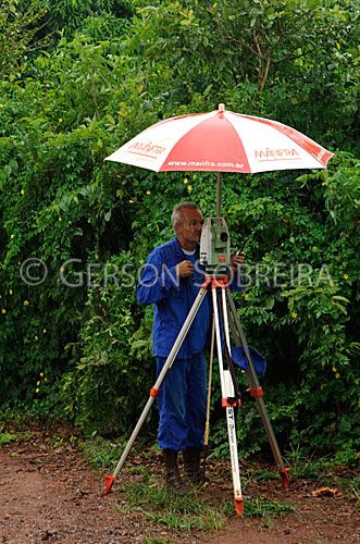 Keywords: Vertical, Parana, Londrina, 2011, Mediçao, Medindo, Gente, Homem, Adulto, Trabalho, Topografo, Agrimensor, Equipamento, Ferramenta Instrumento, Teodolito, Chuva |