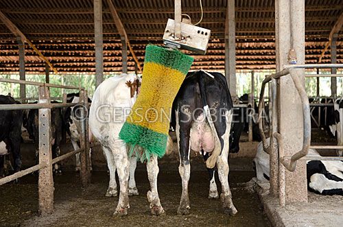 Keywords: Free-Stall Free Stall, Galpao, Instalaçao rural, Holstein, Holandes, Holandesa, Leiteira, Leiteiro, Vaca, Gado Pecuaria, Bovino, Animal, Castro, Parana, Horizontal, 2011, Conforto Bem-estar, Equipamento, Escova, Coçando, Coceira, Escovaçao, Escovando |