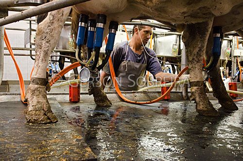 Keywords: Sala de Ordenha, Instalaçao rural, Holstein, Holandes, Holandesa, Leiteira, Leiteiro, Vaca, Gado Pecuaria, Bovino, Animal, Castro, Parana, Horizontal, 2011, Gente, Homem, Adulto, Trabalho, Retireiro, Ordenhador, Equipamento, Ordenhadeira |